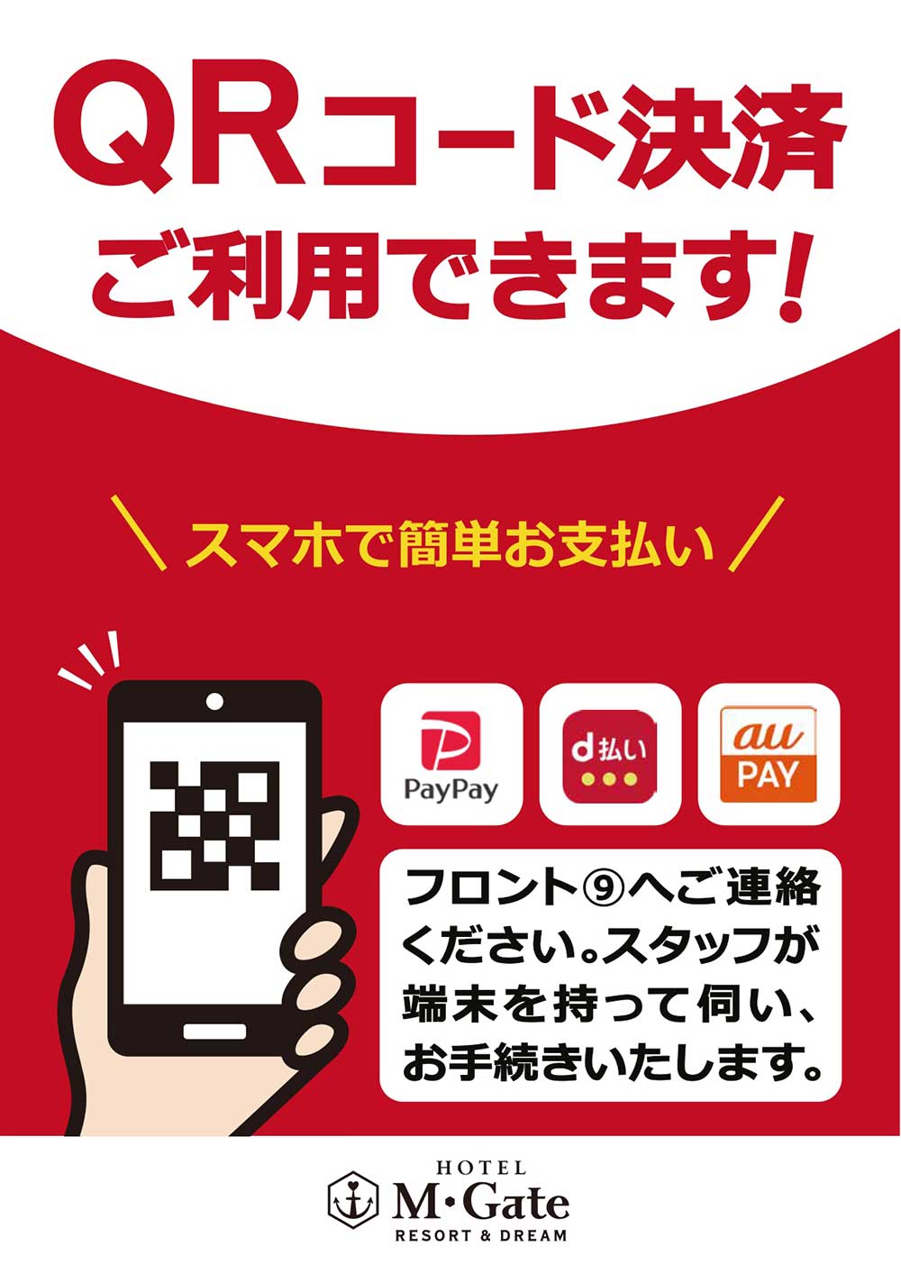 お客様の利便性向上のため、QRコードでのお支払いが可能になりました。